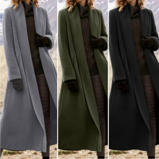 ✨🌸✨Εξαιρετικά μακρύ παλτό, νέο 2025, εκτεταμένο casual μάλλινο αντιανεμικό