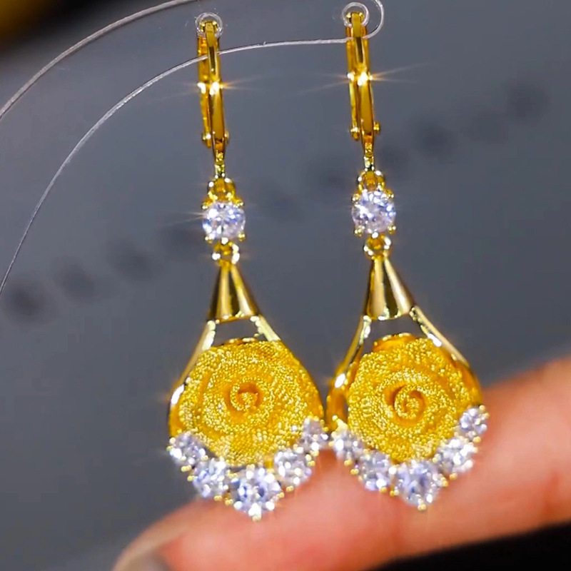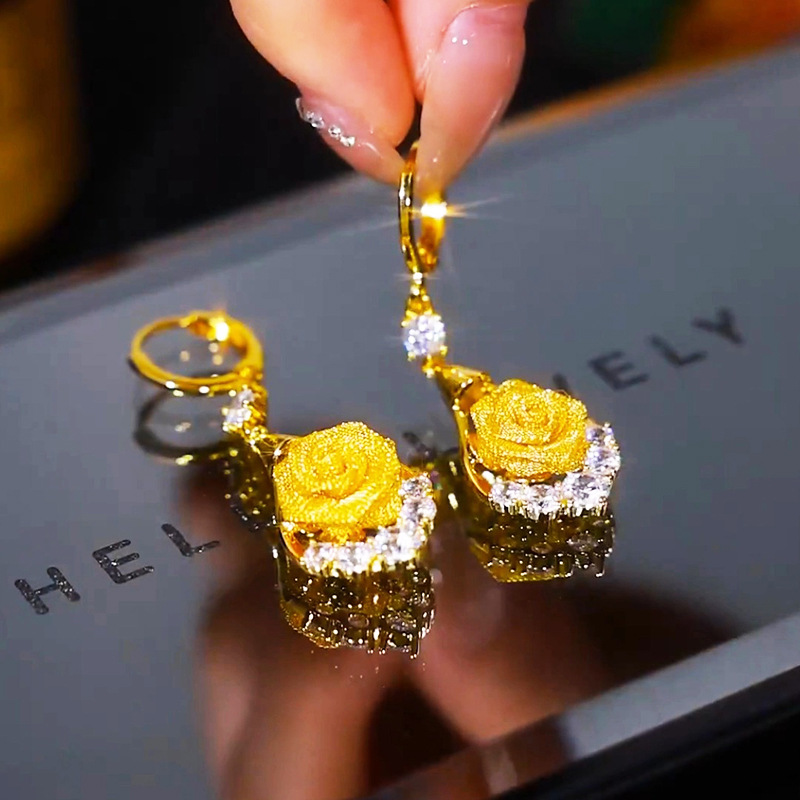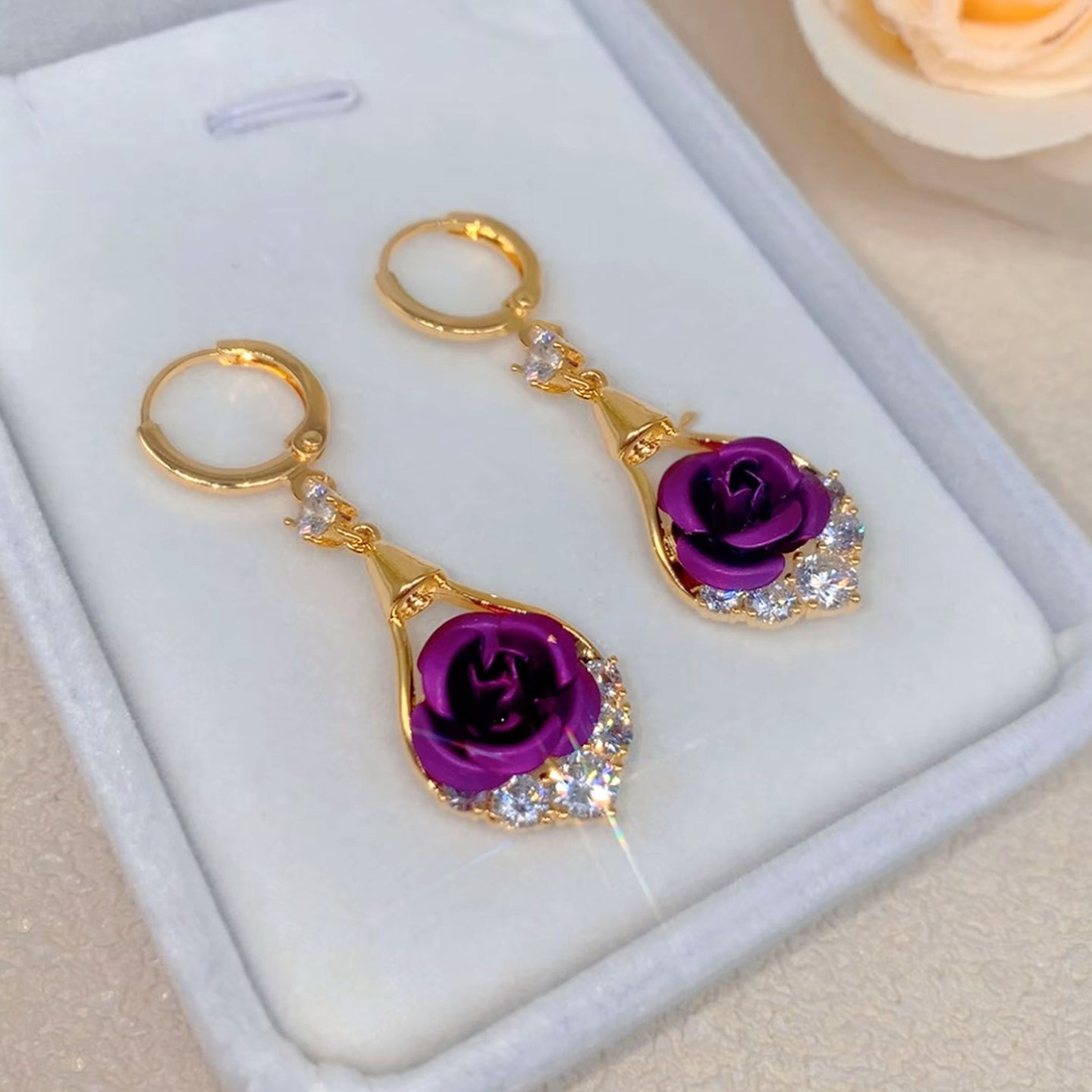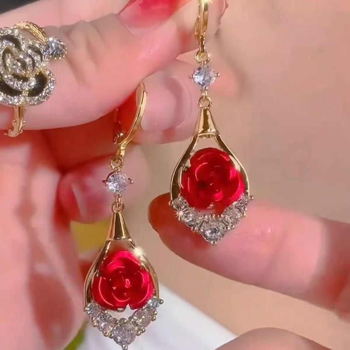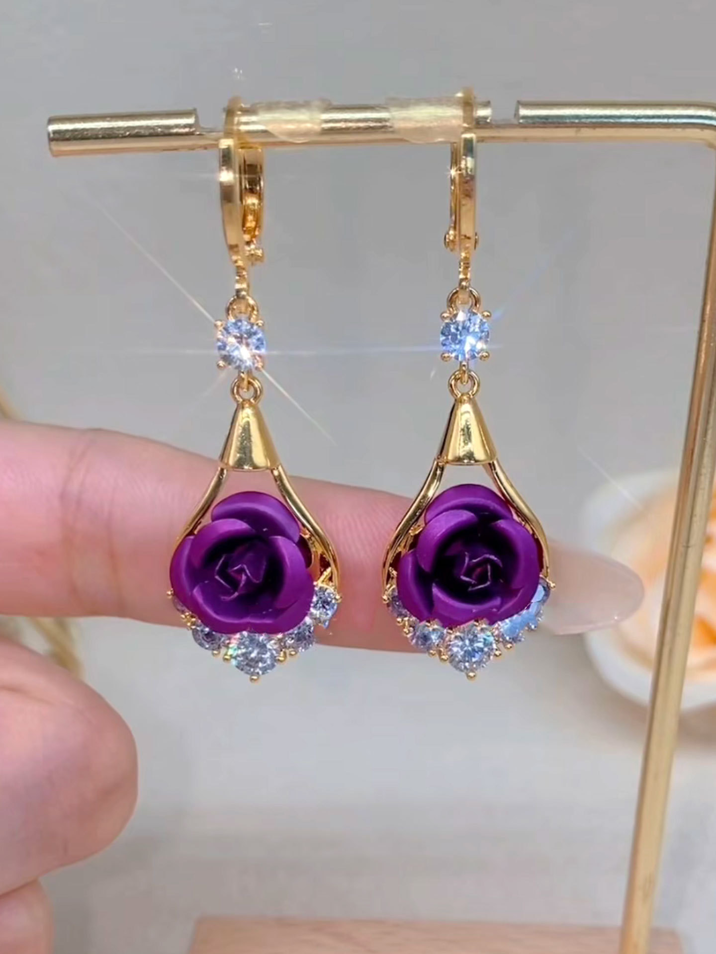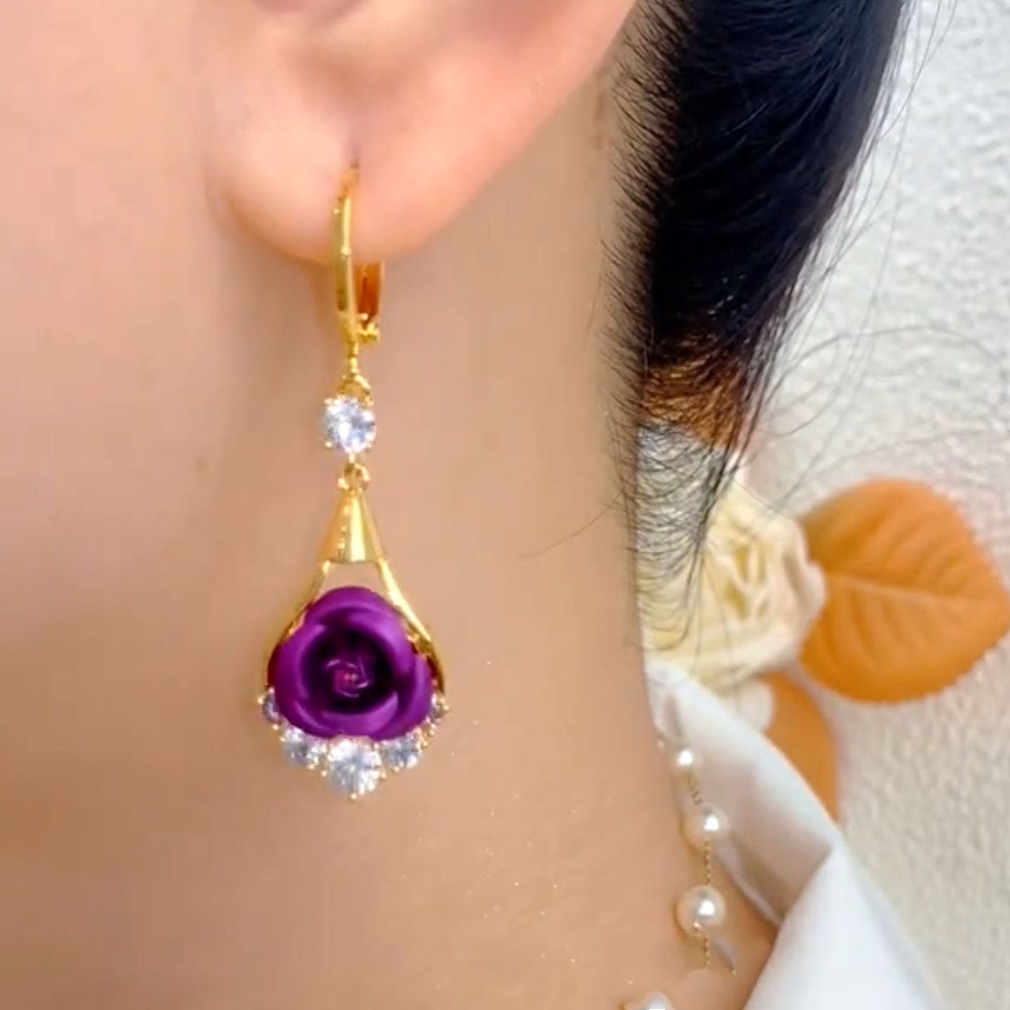✨Ειδική προσφορά【Αγοράστε 1 και πάρτε 1 δωρεάν!】🌹Πολυτελή και κομψά σκουλαρίκια με τριαντάφυλλα διακοσμημένα με διαμάντια