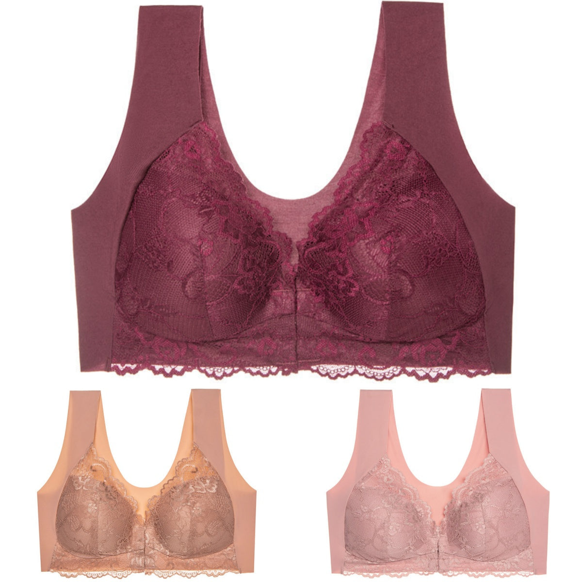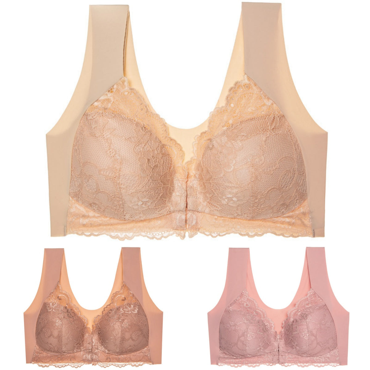 ✨Ειδική προσφορά περιορισμένης διάρκειας🔥【3 τεμάχια】 Μεγάλο μέγεθος με μπροστινό κούμπωμα, σέξι, χωρίς μπανέλα, σουτιέν με όμορφη πλάτη