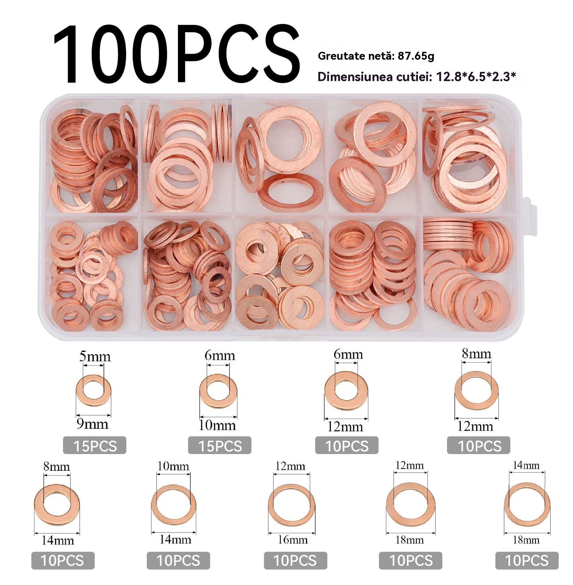 🔥📌💡【100τμχ】Κουτί με μωβ χάλκινες ροδέλες / δακτύλιοι O με βύσματα λαδιού