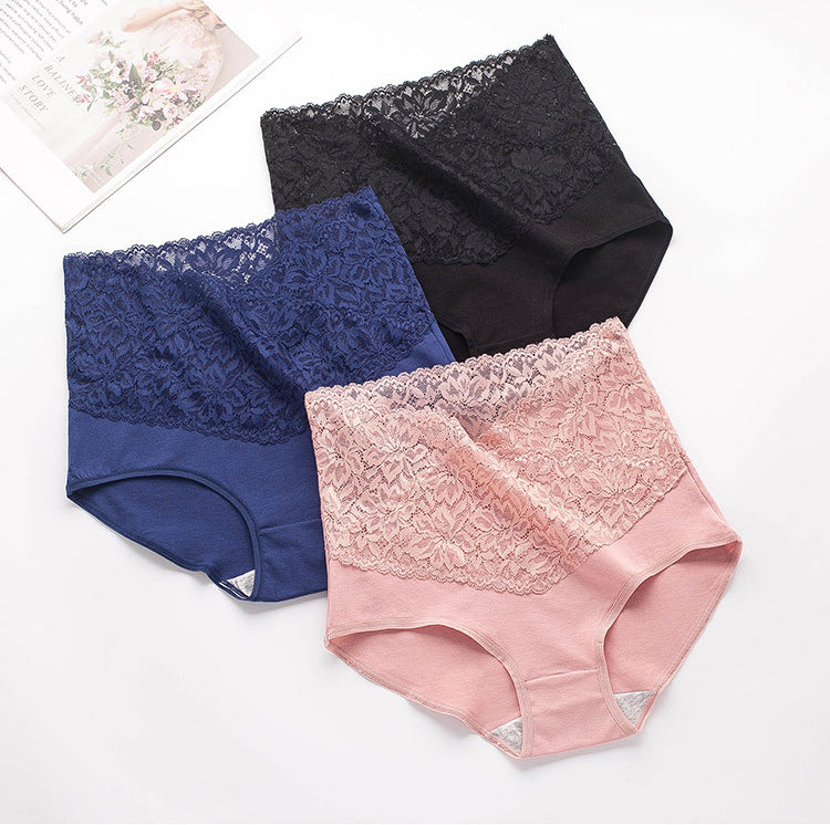 🔥【Χαμηλότερη τιμή για περιορισμένο χρονικό διάστημα】Υψηλόμεσο βαμβακερό αντιβακτηριδιακό δαντελένιο εσώρουχο με δαντέλα【M-3XL】