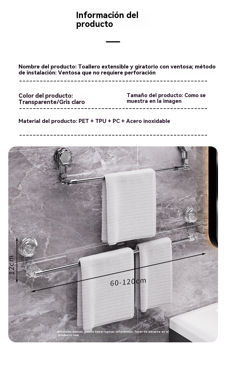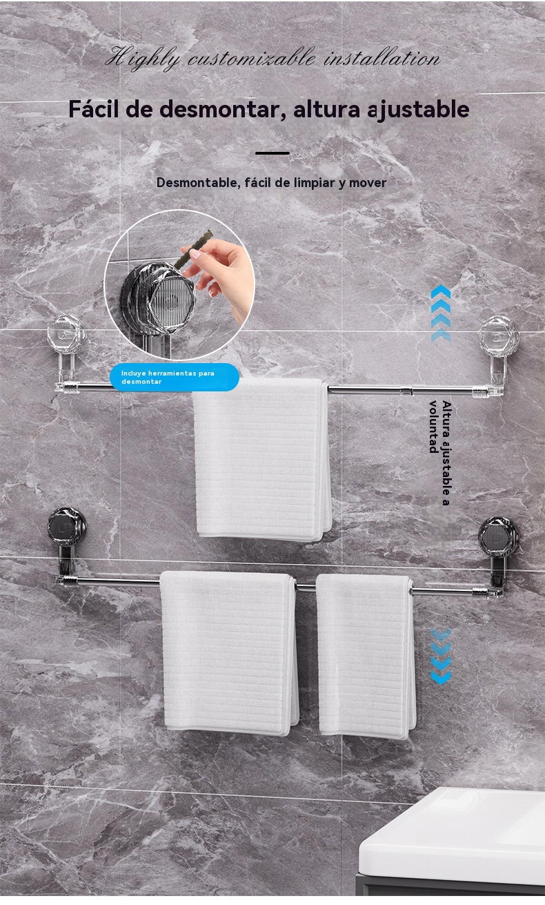 🚿✨🔥Ζεστή πώληση σε χαμηλή τιμή🔥 Ρυθμιζόμενη μπάρα πετσέτας με βεντούζα: Δεν απαιτείται τρύπημα, δεν φθαρεί και προσφέρει άνετη λαβή.
