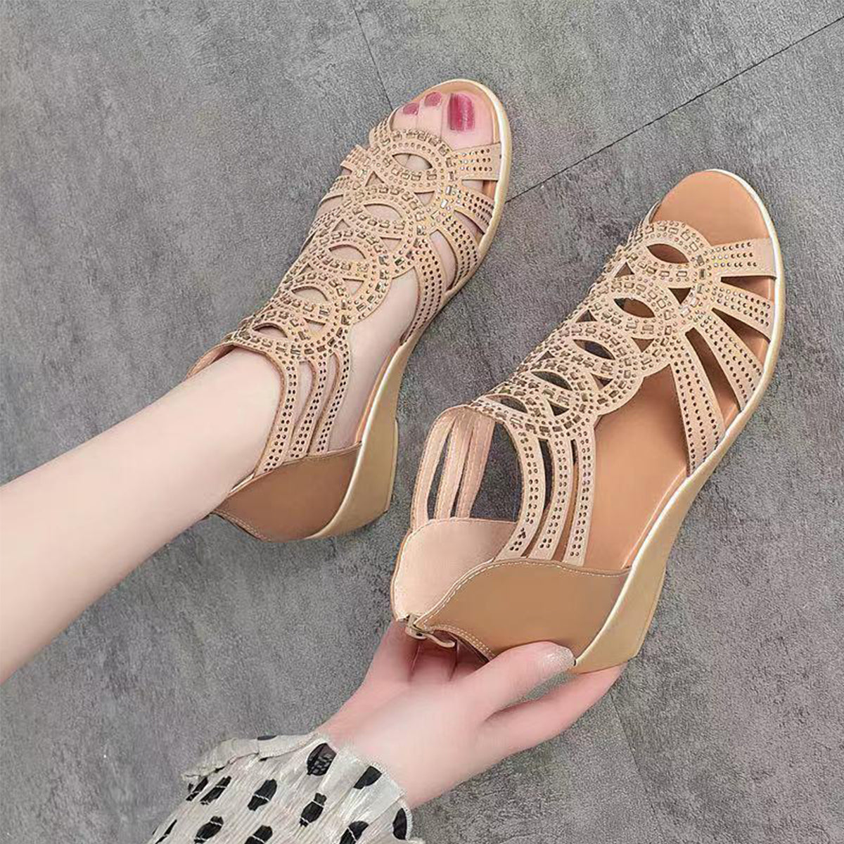 【35-40】2025 νέο κοίλο αναπνεύσιμο σανδάλια μεσαίου τακουνιού με μαλακή σόλα, μαλακό δέρμα μόδα είναι ευέλικτο