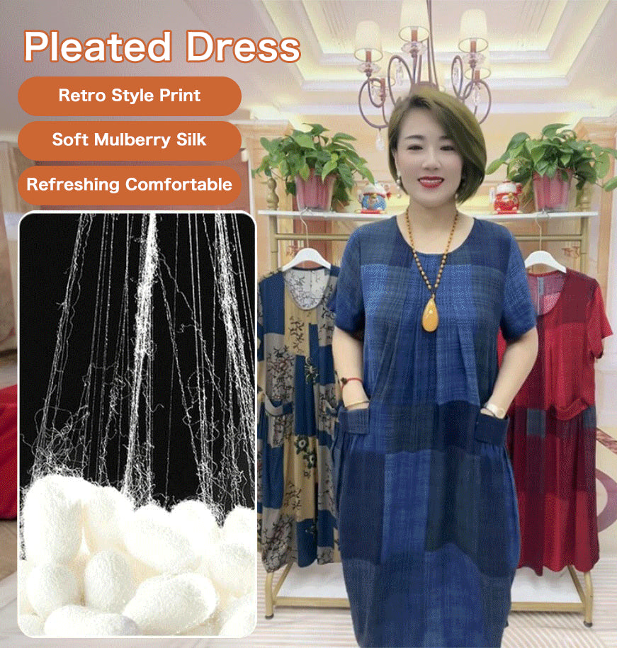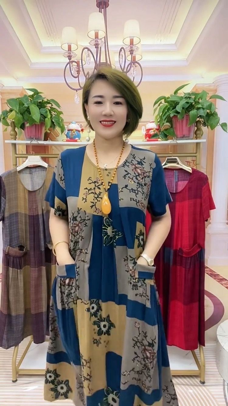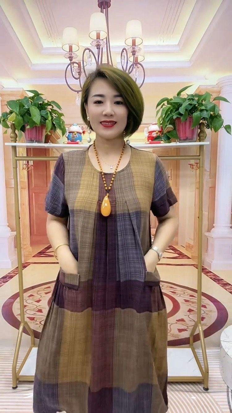 [50-100kg] 2025 καρό φόρεμα για τους μετακινούμενους άνετο μοντέρνο ευρύ φόρεμα για τη μαμά